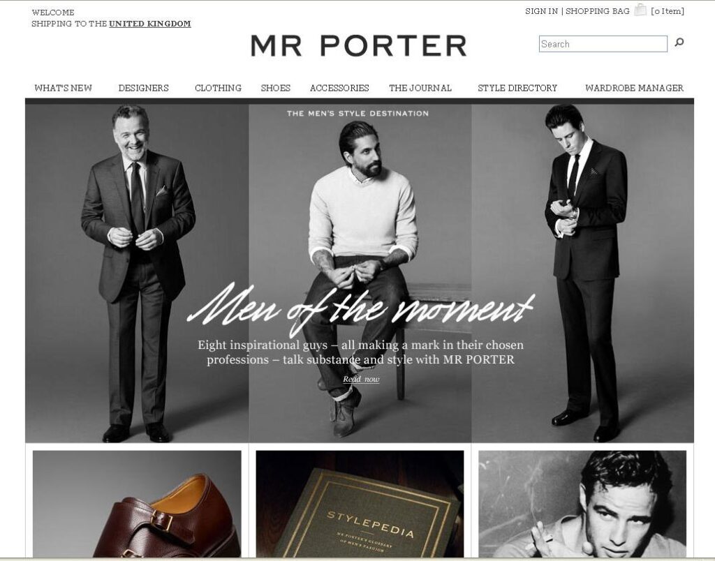 Undoubtedly the best online store for men. A great mix of casual brands such as Polo Ralph Lauren and Nike to high-end designers such as YSL and Brunello Cucinelli. The modern man will find everything he needs here. With over 500 brands, the end-of-season sale can be overwhelming, so I highly recommend starting with a list. I’ve picked up some great cashmere items, jeans, and shoes here in the past.