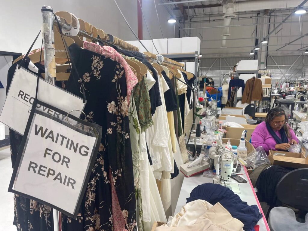 Reformation uses deadstock fabrics, recycled materials, and tracks its carbon, water, and waste footprints per garment.